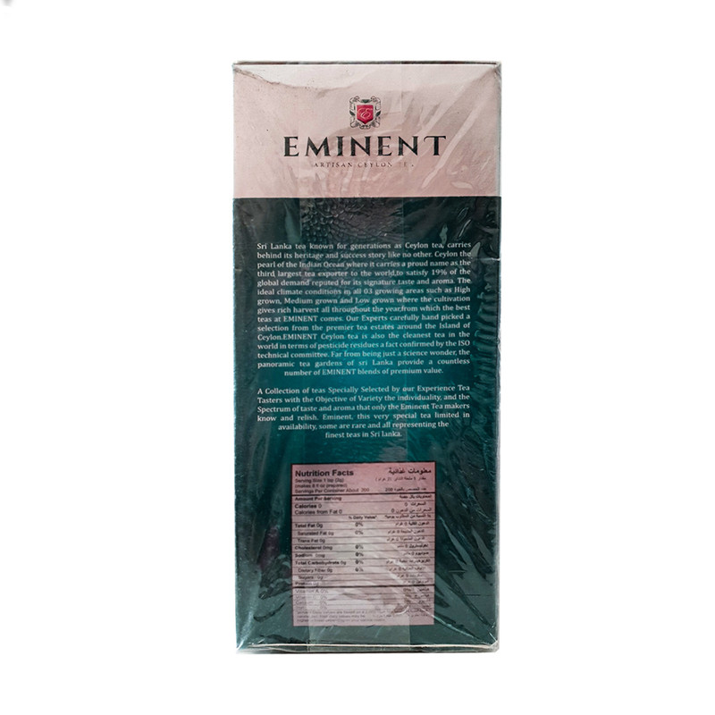 چای سیاه امیننت با طعم هل 500 گرمی محصولی از برند شناخته شده جهانی امیننت می باشد . شاید می توان با جرات می توان گفت ترکیب چای سیاه با هل یکی از سنتی ترین روش های دم آوری چای در ایران می باشد . عطر پیچیده شده از ترکیب چای و هل یکی از فرح بخش ترین عطرهای خانه اصیل ایرانی می باشد. امیننت با ترکیب چای شکسته سیلان ممتاز با کیفیت خود با هل تازه این امکان را به شما می دهد که در میمهانی، سفر ، محل کار بی دغدغه از نوشیدن یک چای هل لذت ببرید. برند چای امیننت علاوه بر تنوع محصولی در طعم و نوع چای دارای تنوع بالایی در بسته بندی نیز دارد و شما می توانید چای امیننت با طعم هل را در بسته بندی های 150 گرمی، 250 گرمی ، 500 گرمی تهیه کنید.