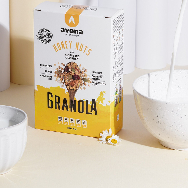 گرانولای بادام و کرن بری اونا، میان وعدهای سرشار از مواد مغذی است که در طول روز نیازهای اصلی بدن را تامین میکند. طعم دلپذیر، در کنار احساس سیری طولانی مدت و فواید آن برای بدن، این گرانولا را به جزء جدایی ناپذیر سبد غذایی روزانه تبدیل میکند. این ترکیب گرانولا حاوی مغز بادام، مغز تخم کدوحلوایی و کرن بری است. کرن بری میوهای کوچک و قرمز رنگ شبیه به ذغال اخته است که با میل کردن آن طعم ترش و درعینحال هیجانانگیز را میتوان تجربه کرد. هر یک از این مواد سرشار از مواد مغذی مانند آهن، پروتئین، نشاسته، ویتامینهای گروه ب، فسفر و منیزیم هستند. مواد مغذی موجود در این میان وعده از بروز بیماریهای قلبی و عروقی و برخی از بیماریهای سرطان جلوگیری میکنند. از فواید دیگر مصرف آن میتوان به کاهش وزن، کاهش فشار خون، کاهش کلسترول، تنظیم قند خون، بهبود عملکرد دستگاه گوارش، تقویت سیستم ایمنی و از همه مهمتر احساس سیری بلند مدت اشاره کرد. ارزش غذایی یک وعده 35 گرمی از این خوراکی خوشطعم، 125 کیلوکالری، 4.5 گرم فیبر، 3.7 پروتئین، 22.4 گرم کربوهیدرات، 1.4 گرم بتاگلوکان و 2.7 گرم چربی است.این خوراکی غنی را میتوان در وعده صبحانه یا بهعنوان میان وعده در طول روز مصرف کرد. برای افرادی که ساعتها بیرون از منزل مشغول کار هستند و فرصت کافی برای میل به غذا ندارند، این ماده خوراکی بهترین و سالمترین وعده غذایی شناخته میشود. همچنین ورزشکاران برای به دست آوردن انرژی لازم در زمان انجام فعالیتهای ورزشی از این خوراکی مفید میتوانند در رژیم غذایی خود استفاده کنند. این میان وعده غنی فاقد گلوتن است و افرادی که به این ماده غذایی حساس هستند با خیال راحت میتوانند آن را میل کنند. مصرف این ترکیب خوراکی برای مادران شیرده علاوه بر بالا بردن انرژی موجب افزایش شیر آنها نیز میگردد. برای میل کردن این ماده خوراکی خوشمزه میتوانید آن را به همراه مواد دیگر غذایی ترکیب و طعم جدیدی از آن را امتحان کنید. گرانولای بادام و کرن را به تنهایی به عنوان تنقلاتی سالم و یا به همراه شیر و تکههای میوه و یا بعنوان تاپینگ بستنی، انواع سالادها و حتی ماست نیز میتوان نوش جان کرد. استفاده از این محصول در کشورهای پیشرفته دنیا جزء لاینفک زنجیره غذایی میباشد، برای مثال 40 درصد صبحانه مردم آلمان غلات صبحانه میباشد.