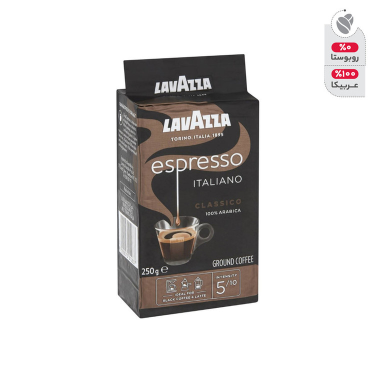 پودر قهوه لاواتزا مدل Espresso Italiano CLASSICO 100٪ عربیکا رُست روشن نُت میوهای غلظت 5 از 10 ساخت ایتالیا