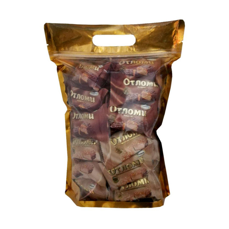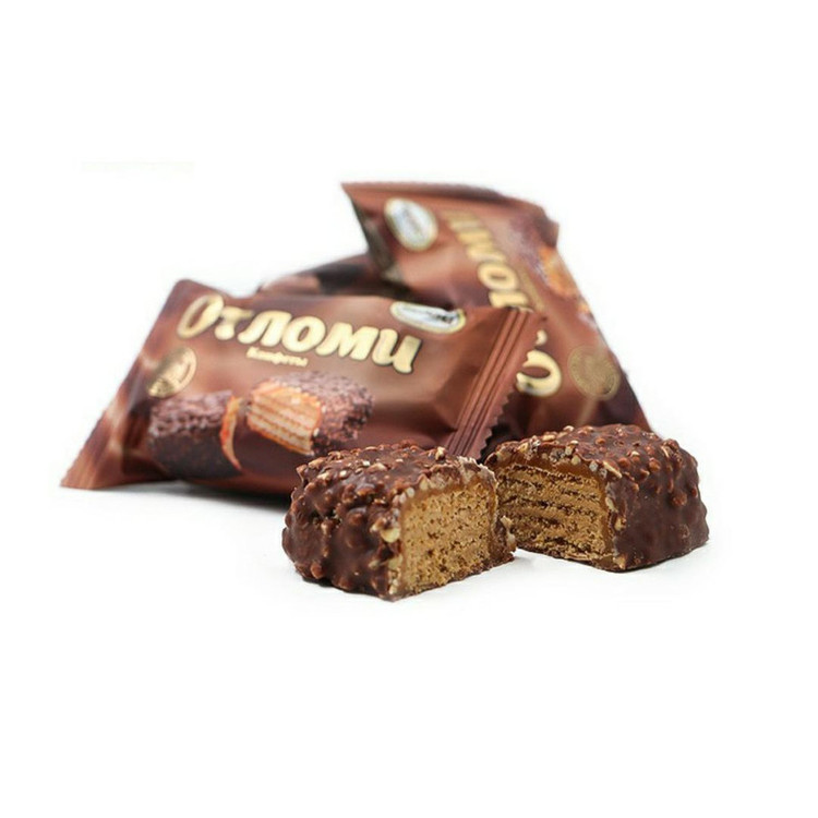 ویفر پر شده با کرم کارامل ویژه روکش شکلاتی با عطر کاکائوی بی نظیر آکوند حاوی تکه های بادام زمینی و برنج پفکی ترکیب تازه و جذاب محصول روسیه