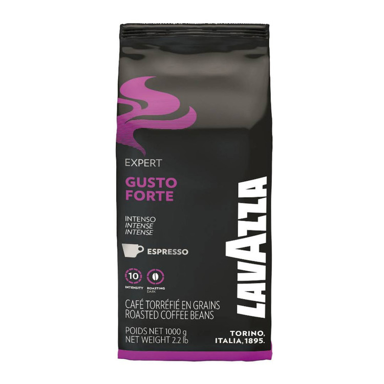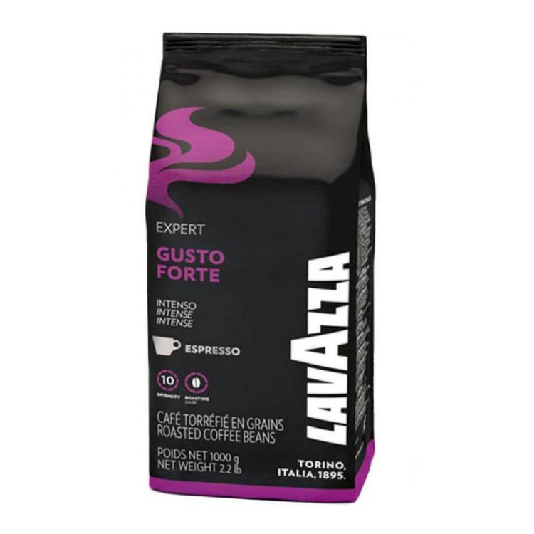 دانه قهوه لاواتزا مدل Expert GUSTO FORTE ترکیب ۱۰۰٪ ربستا از آفریقا و جنوب شرق آسیا رست تیره غلظت ۱۰ از ۱۰ نُت خشکبار و ادویه