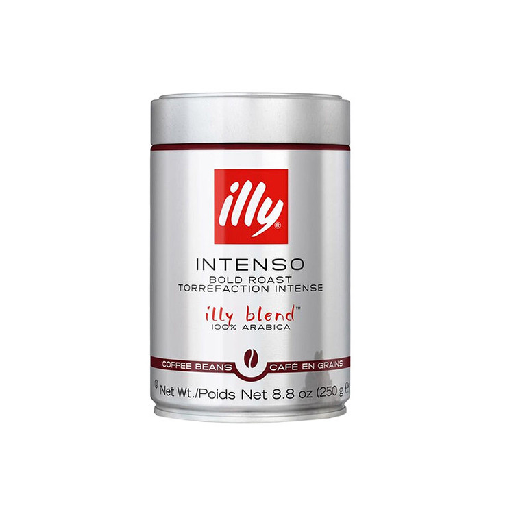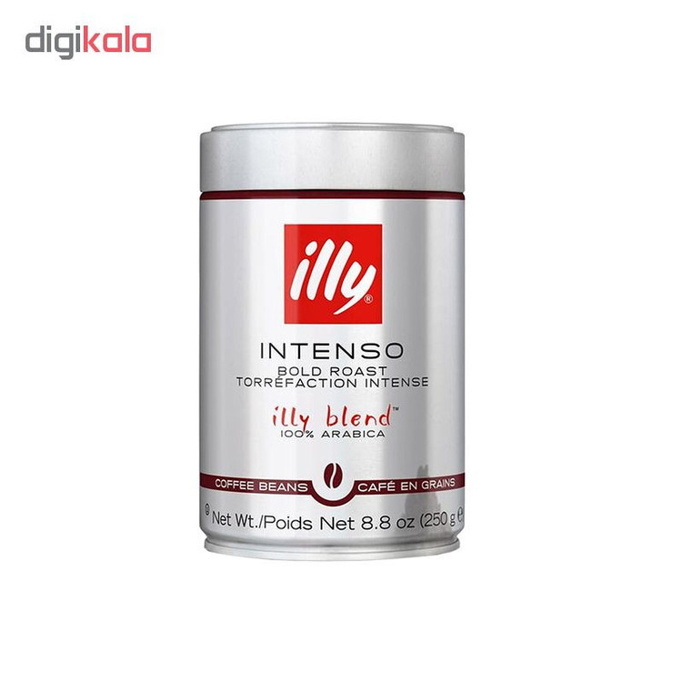 دانه قهوه ایلی دارک روست illy Bean Dark Roast Coffee ترکیب 100 % عربیکا (illy blend ایلی بلند) قوطی 250 گرمی دانه قهوه دارای طعمی عمیق و کامل و ته مزه کاکائو و میوه خشک مناسب برای انواع روشهای دم کردن قهوه محصول کشور ایتالیا
